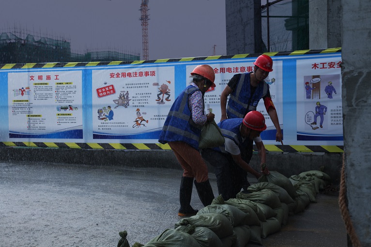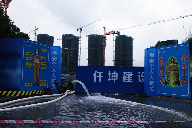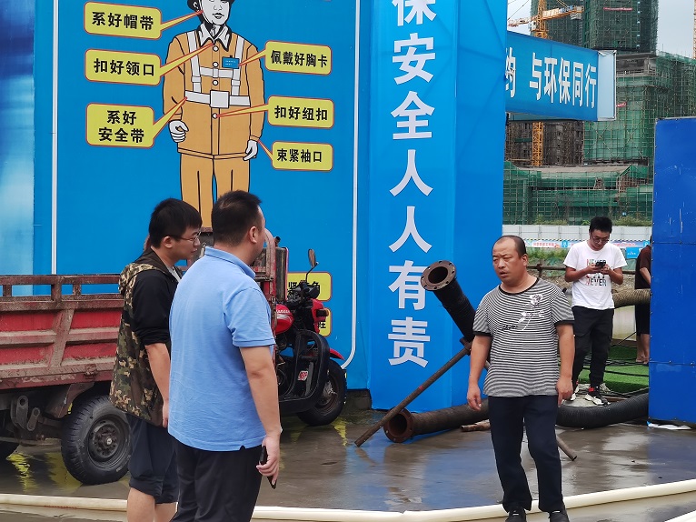 8月16日凌晨,仟坤建設(shè)在建項(xiàng)目多個(gè)工地因持續(xù)的暴雨天氣導(dǎo)致工地上集水坑瞬間大量積水,向周邊擴(kuò)散,出現(xiàn)險(xiǎn)情,排水防汛迫在眉睫。仟坤建設(shè)總經(jīng)理詹偉帶領(lǐng)仟坤建設(shè)防汛應(yīng)急小組迅速做出反應(yīng),采取多地同步展開(kāi)的處理方式,水街東區(qū)項(xiàng)目經(jīng)理王天華、水街東區(qū)項(xiàng)目經(jīng)理王明亮、天璽項(xiàng)目經(jīng)理薛昌均帶領(lǐng)各個(gè)小組堆砌沙袋、連接電路、抽水泵安裝、排水口疏通各項(xiàng)措施同步展開(kāi),安排各位置輪流值守,在一個(gè)通宵的奮戰(zhàn)之后降低了水位,險(xiǎn)情得到了有效控制。
