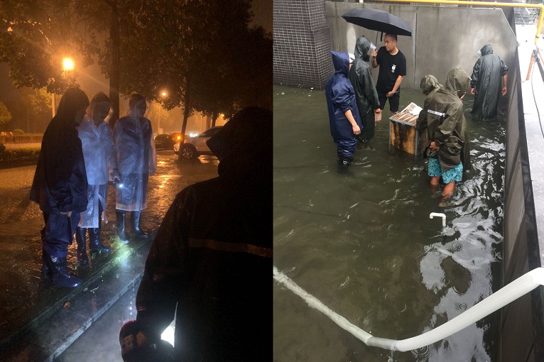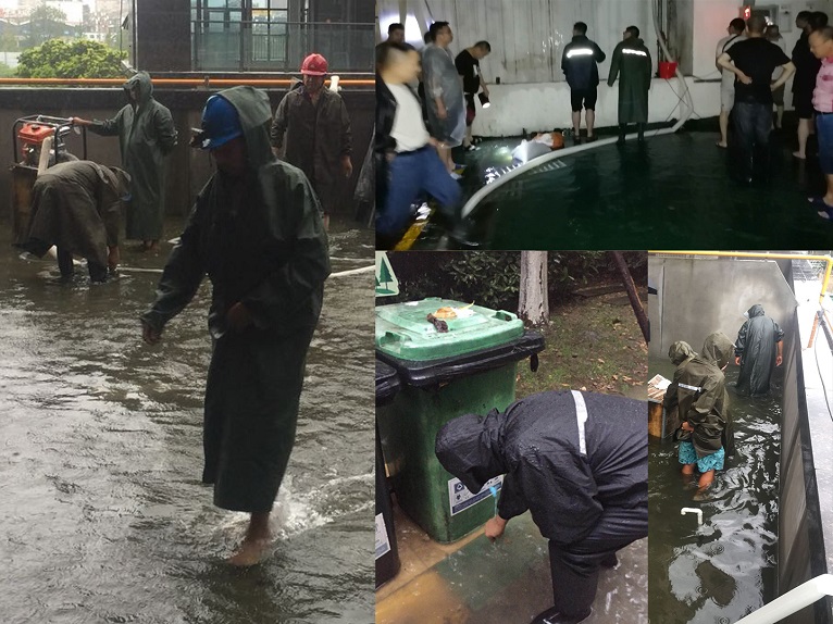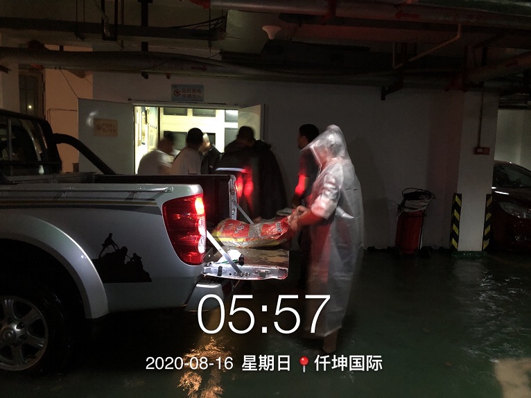 8月16日凌晨1點(diǎn),仟坤物業(yè)的微信工作群發(fā)來(lái)消息“各個(gè)單位注意,仟坤國(guó)際地下停車(chē)場(chǎng)出現(xiàn)大量積水,請(qǐng)各方馳援仟坤國(guó)際...”一場(chǎng)防汛排水的阻擊戰(zhàn)在凌晨1點(diǎn)正式打響。仟坤物業(yè)總經(jīng)理唐烺峰任副指揮,帶領(lǐng)仟坤物業(yè)防汛應(yīng)急小組來(lái)到出現(xiàn)積水的停車(chē)場(chǎng)隨后仟坤建設(shè)防汛應(yīng)急小組和宏運(yùn)公交防汛應(yīng)急小組趕到現(xiàn)場(chǎng),疏散地下室車(chē)輛、對(duì)地下室出入口阻擋、工程組對(duì)地下室積水進(jìn)行排除,10厘米、8厘米、5厘米積水以肉眼可見(jiàn)的速度被排出,終于在8月16日早上8點(diǎn)解除汛情。還未來(lái)得及調(diào)整和喘息,夜里10點(diǎn)仟坤天朗部分區(qū)域出現(xiàn)積水,他們?cè)俅未蚱鹁衩銊爬^續(xù)投入到新的戰(zhàn)斗,直至第二天早上五點(diǎn)排除險(xiǎn)情。連續(xù)兩天無(wú)休參與到防汛搶險(xiǎn)的任務(wù),無(wú)論是公司高層領(lǐng)導(dǎo),還是普通崗位的基層職工,他們挽起褲腿奮戰(zhàn)在防汛一線(xiàn),凝聚力和戰(zhàn)斗力在此刻得到了充分的體現(xiàn)。仟坤物業(yè)總經(jīng)理唐烺峰表示:身為黨員,就應(yīng)該在急難限重的時(shí)刻走在最前面;身為領(lǐng)導(dǎo),就應(yīng)該在危急時(shí)刻當(dāng)好標(biāo)桿做好表率。能夠很好的控制汛情,是對(duì)業(yè)主生命和財(cái)產(chǎn)安全的最好保障,我們要確保能夠安全度過(guò)汛期,給業(yè)主一個(gè)安心、舒心的居住環(huán)境。