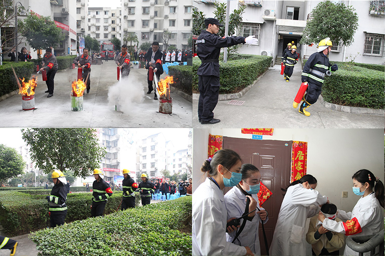 下午3點,“報告總指揮一棟一單元發(fā)生火情...”隨著對講機里傳來火情通知,各應(yīng)急小組聞訊而動啟動消防應(yīng)急預(yù)案,滅火組持滅火器火速趕往火災(zāi)現(xiàn)場對大火進行撲救,警戒組迅速展開警戒對火場附近進行封鎖管制控制人員圍觀和進入造成傷亡,疏散組持喊話器將樓內(nèi)及周邊群眾進行緊急疏散避免擁擠造成踩踏等二次傷害、工程組持工程工具進場接通消防栓切斷電源和火源防止火勢繼續(xù)蔓延、醫(yī)療組也乘救護車緊急到達現(xiàn)場對樓內(nèi)傷員進行包扎救治并使用擔(dān)架抬出重傷病號。最終樓內(nèi)群眾全部撤出,傷員得到及時救治和轉(zhuǎn)移,“火情”得到有效控制。