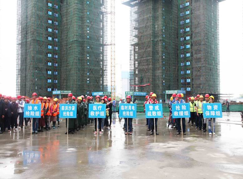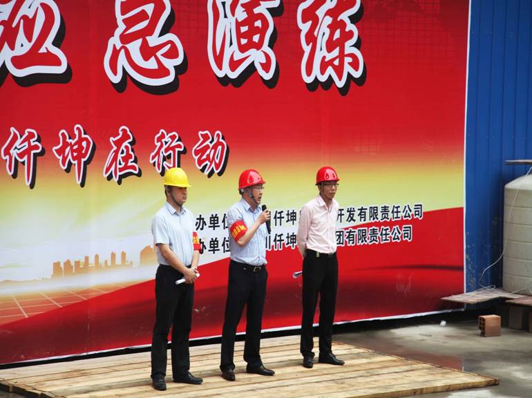 上午10:00分,在“仟坤-天朗”項(xiàng)目施工現(xiàn)場(chǎng),一場(chǎng)別開生面的防汛搶險(xiǎn)應(yīng)急演練正在進(jìn)行中,演練模擬綿竹突降暴雨,造成建筑工地大面積積水,部分裝備被淹。防汛搶險(xiǎn)小組“聞汛”而動(dòng),第一時(shí)間趕到事故現(xiàn)場(chǎng),隨即開展救援工作,首先將傷員搶救出來并轉(zhuǎn)移到安全地帶,臨時(shí)用電搶險(xiǎn)組斷開電路,然后用大功率抽水機(jī)排水,并用沙袋截住坑基上的側(cè)洪水,經(jīng)過半個(gè)小時(shí)的艱苦奮戰(zhàn),險(xiǎn)情被完全控制,演練結(jié)束。