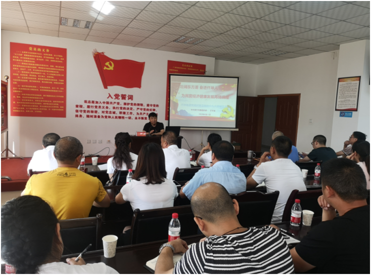 為落實(shí)黨的十九大精神,切實(shí)抓好民營(yíng)企業(yè)黨建工作,仟坤集團(tuán)黨委于6月5日組織黨委委員和各黨支部書記開展以“學(xué)習(xí)黨的十九精神”為主題的黨日活動(dòng)。特邀請(qǐng)了原綿竹市委兩新工委專職副書記、綿竹市兩新組織黨建指導(dǎo)員工作站站長(zhǎng)于天培進(jìn)行黨課培訓(xùn)。綿竹市委組織部?jī)尚鹿の瘜B毟睍浲跖d平到會(huì)指導(dǎo),綿竹市兩新組織黨建指導(dǎo)員工作站第三小組黨建指導(dǎo)員及所指導(dǎo)企業(yè)的黨務(wù)工作者,集團(tuán)黨委書記、副總裁周述軍,集團(tuán)黨建指導(dǎo)員劉佩章及黨委班子成員和各支部書記、支委參加。